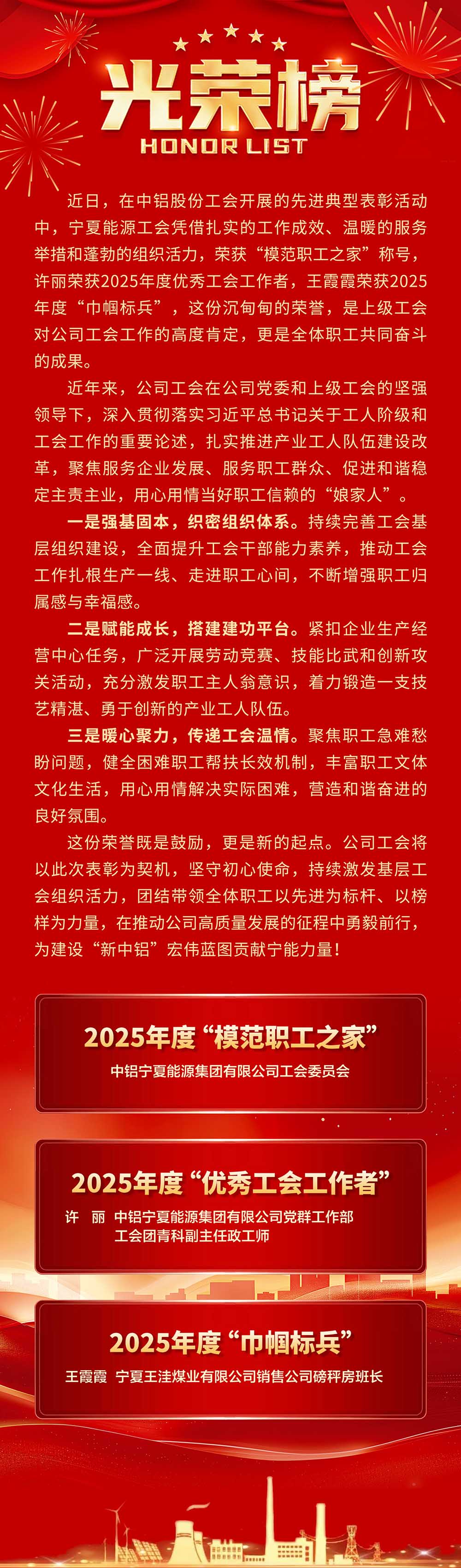 宁夏能源工会荣获中铝股份工会“模范职工之家”称号